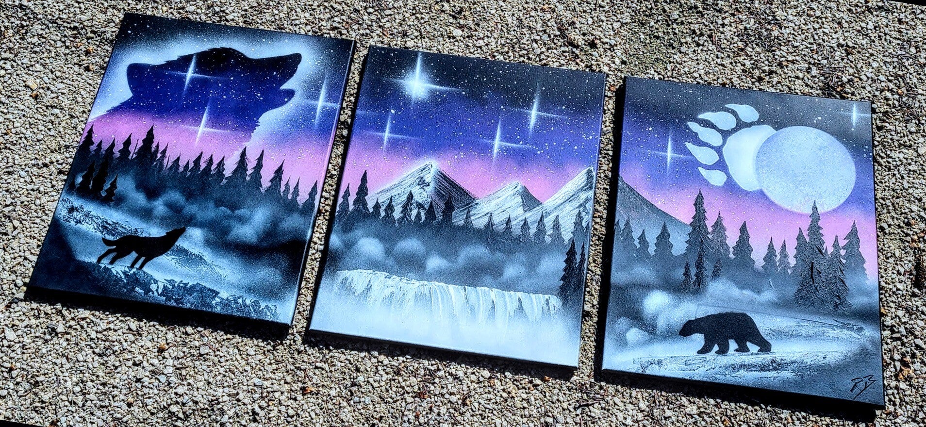 Handmade to order across 3 separate 16" by 20" stretched canvas.